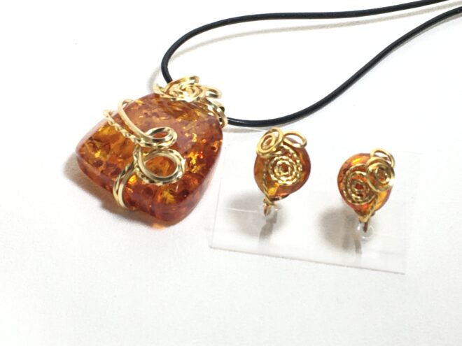 こちらは、スクエアのワイヤーで天然石をラッピング。