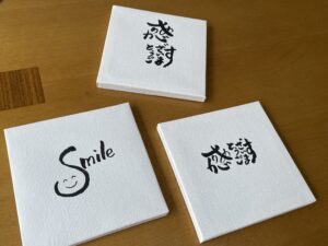 真ん中に、筆文字を書いたものも用意して、そちらは周囲にポンポンとお花を咲かせてもらいました♪