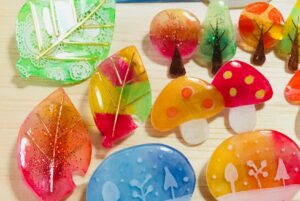 レジンや透明マニキュアを塗ると、透け感が増します。