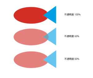 不透明度100%の時は、図形が重なっても上になった色がプリントされるので