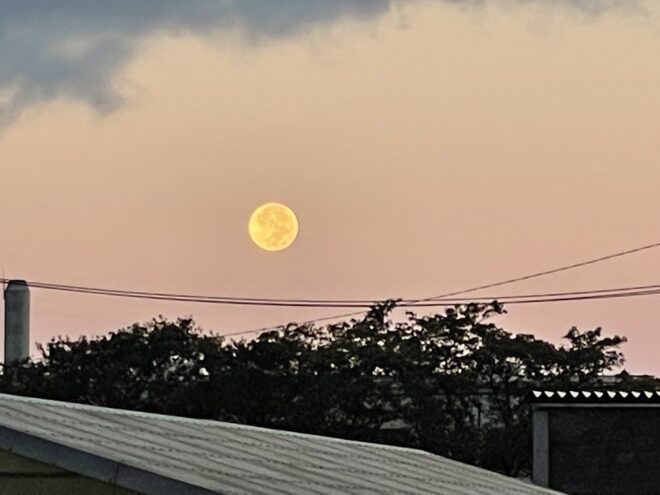 そして今朝のお月様は、ずっと高い位置にいて大きさも昨日より小さく見えました。