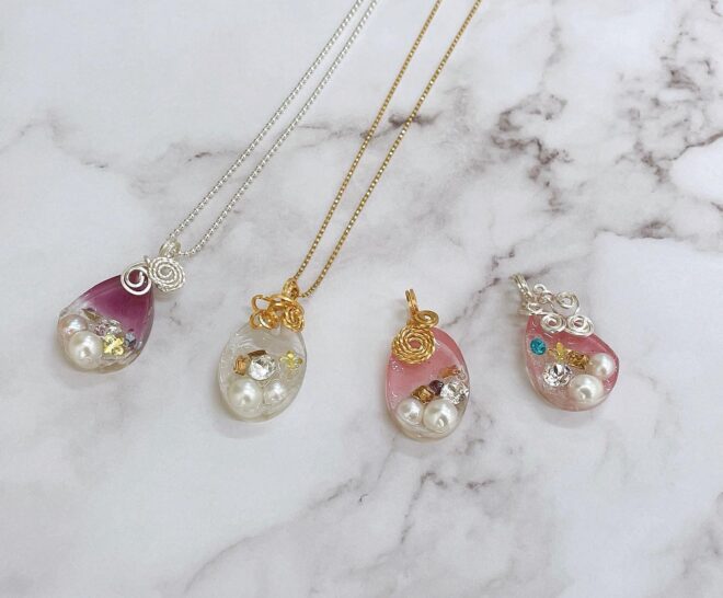 7月中旬のレジンアクセサリーの講習にご参加いただいた方を中心に立ち上がったサークルで、年4回集まって、アクセサリーを作ることになっています。