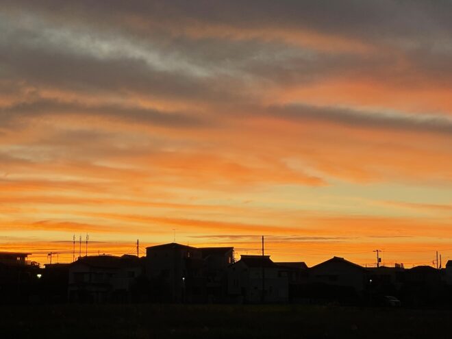 西の空は綺麗な満月でしたが、東の空はまた別の顔。