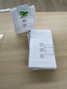 お守りの作り方は、昨日ご紹介した干支のお守り作りと同じですが、この時はお父さんへのプレゼント作りだったので、完成品を入れるギフトバッグを待ち時間対策用に用意しました☆