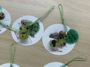 プラバン教室で『父の日にカエルのお守りをプレゼント』として、プラバンでカエルを作ってタイガーアイを抱っこさせたお守りを作りました。