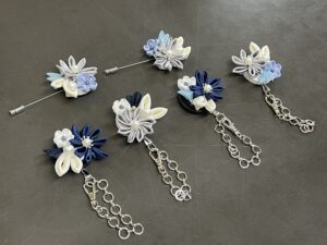 今回は、つまみ細工のバッグチャームまたはハットピンを作りました☆